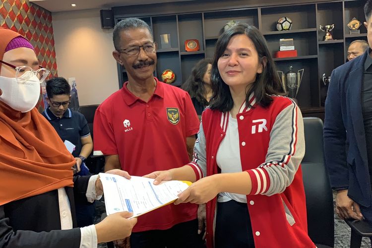 Ratu Tisha secara resmi mencalonkan diri sebagai Wakil Ketua Umum PSSI di GBK Arena, Senayan, Jakarta, Minggu (15/1/2023)