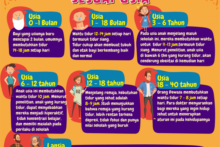 Informasi kebutuhan tidur manusia sesuai usianya.