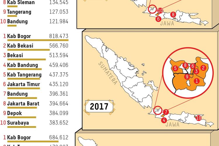Tangkapan layar dari hasil riset Litbang Kompas mengenai jumlah pendatang di 10 daerah utama tujuan migrasi.