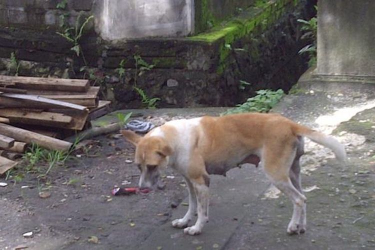 Anjing liar di jalan baru kawasan Renon Denpasar(KOMPAS.com/SRI LESTARI)