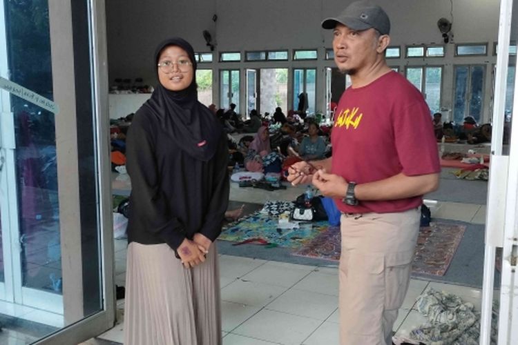 Ilustrasi: Nindi di pengungsian, yang sedang diwawancarai oleh salah satu teman guru. (Dokumentasi pribadi/Kompasianer Sungkowo)