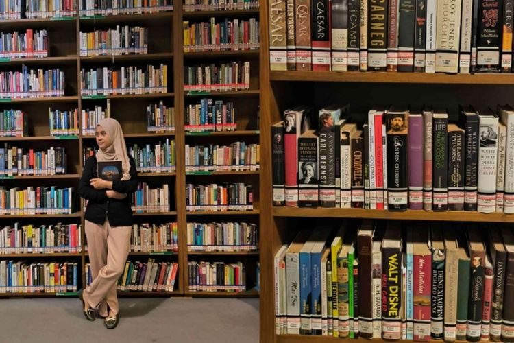 Foto di dalam area perpus dan koleksi buku-buku di Freedom Institute