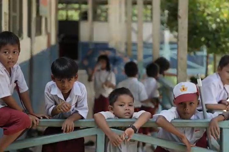 Siswa SDN 1 Barunang bermain dan belajar bersama kala jam istirahat.